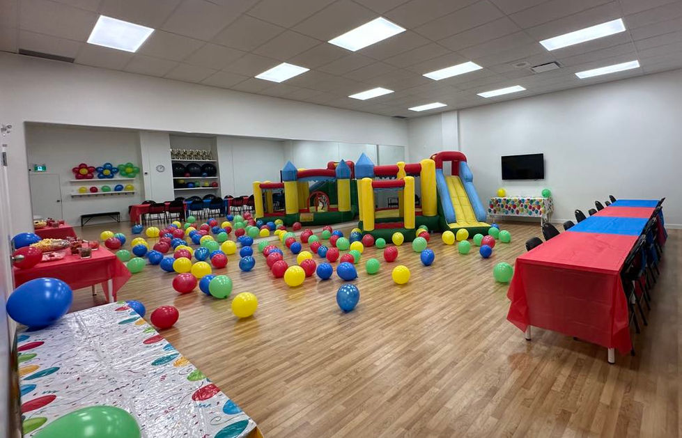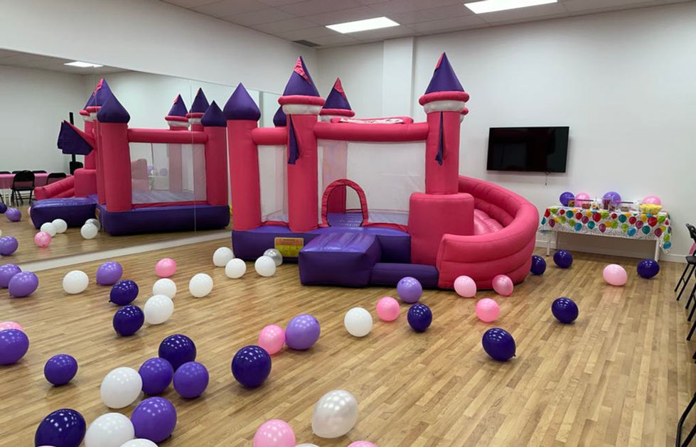 Location de salle (3h) et décoration incluse + jeu gonflable et animation de 45 min (cours de danse, activités et/ou jeux) 280$ + taxes